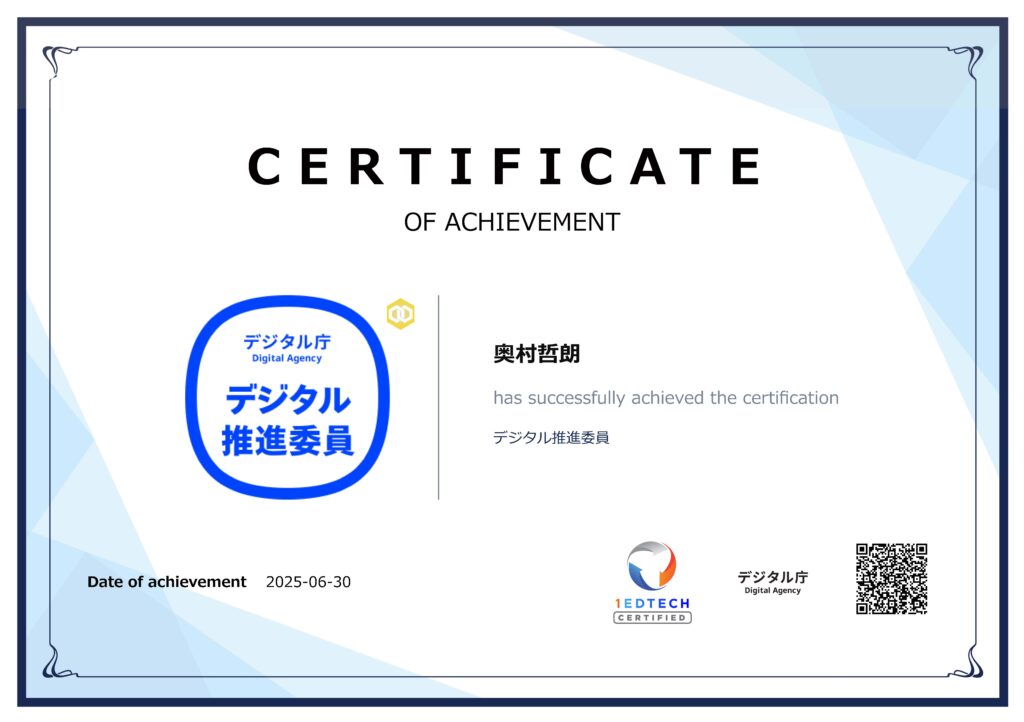 本年6月30日付で、デジタル庁より「デジタル推進委員」に任命されました。