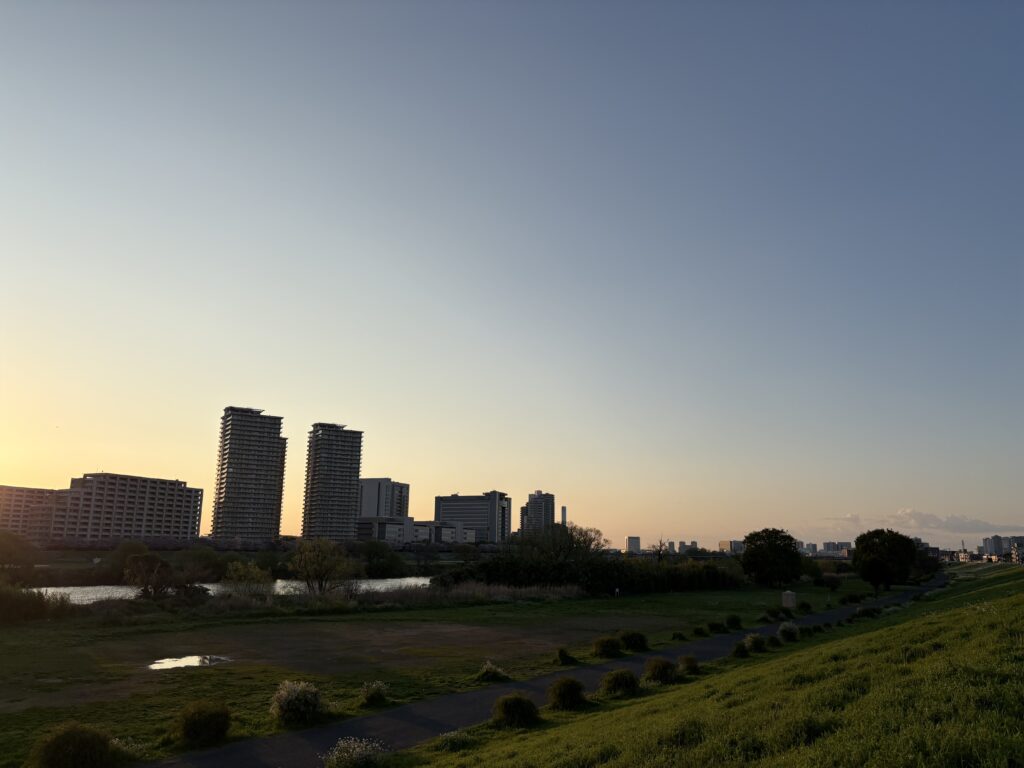 近所の多摩川の土手を走っていると、清々しい朝を感じることができました。
